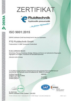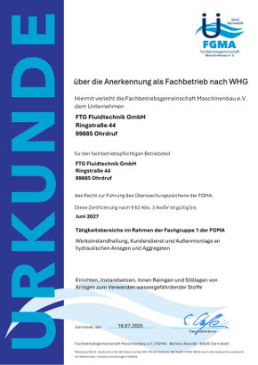 Die Qualität und Beständigkeit der Fluidtechnik GmbH zeigt sich auch durch namhafte Zertifikate, die der Firma in den letzten Jahren verliehen worden sind. Zum wiederholten Male erhielt Fluidtechnik das FGMA Zertifikat und das Fluidtechnik Qualitätsmanagement ist darüber hinaus ISO 9001:2008 geprüft.